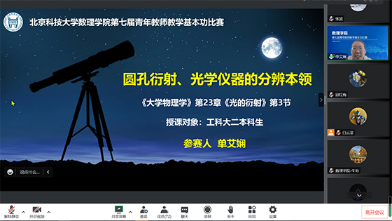 为进一步提高gopay钱包下载 青年教师教学能力和水平,搭建青年教师学习交流平台,发掘新一代优秀青年教学骨干,gopay钱包下载 分工会和教师发展中心联合组织的第七届青年教师教学基本功比赛于2023年1月5日通过线上方式成功举办。gopay钱包下载 党委书记牛珩、院长庞晓露,校督导组专家代表,院、系班子成员,院教学委员会成员及北京市教学名师代表等31位专家参加了本次活动并担任教师评委,来自不同专业的8名学生担任学生评委。比赛由gopay钱包下载 行政副院长白云菲主持。部分青年教师参加了教学比赛观摩。